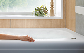 包まれるようなバスタブの入り心地や、なめらかな肌ざわりを実感いただけるショールーム。