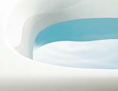 入り心地のよさを追求したバスタブ。優しくやわらかい形状でフィット感を重視し、細部まで設計をおこなっています。大きなカーブが体を包みこんで入浴中の姿勢をしっかりと支えるので、深いくつろぎを感じていただけます。
