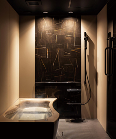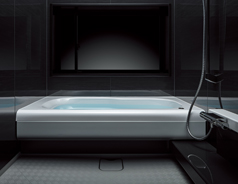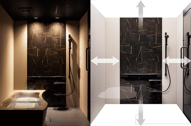 新提案のシンメトリーデザインの壁面により、視覚から入浴時の開放感を実現しました。シンプルでありながら個性的な空間を演出します。