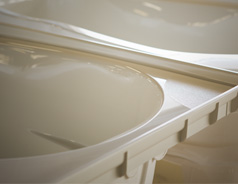 約50年前、マリン製品やスポーツ用品などのFRP素材研究を通し、最初のFRP製バスタブが生まれたところから、バスルームの歴史が始まります。その後バスタブにより適した素材の開発をすすめ、美しさと耐久性を両立したバスタブを発売。設計・成形技術を上げ、快適で心地よいバスルームを追求してきました。