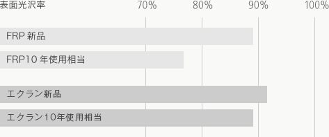 例えば1984年からご愛顧いただいている人造大理石バスタブ「エクラン」について、20年間実際のご家庭で使用した物を調査したところ、表面のツヤや透明感を維持し、キズが少なかったことがわかりました。