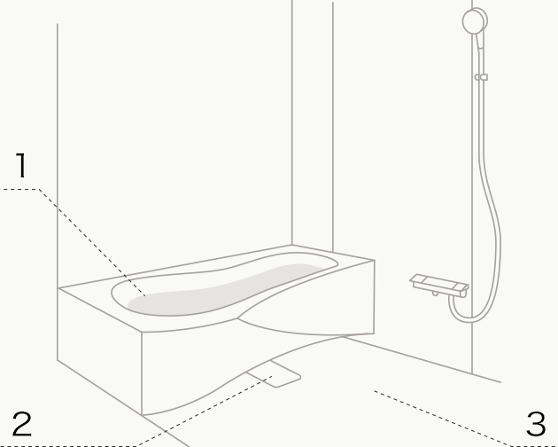 汚れが気になりがちなバスタブや排水口、床はもちろん、壁と床のつぎ目やバスタブとのつぎ目など、隅々まで汚れのたまりにくい工夫を重ねています。