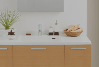 落ち着いた雰囲気の中、ゆったりと、メイクや髪のお手入れをしていただけます。間口にスッキリ収まり、空間を優雅に演出します。奥行がコンパクトなので、限られた空間への設置やリフォームにもぴったりです。
