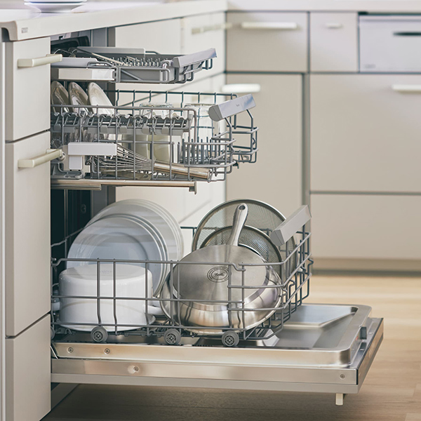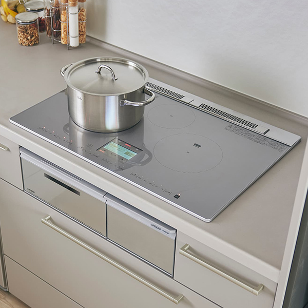 鍋やフライパンも洗える大容量食洗機や、料理を格上げするIHヒーターなど、先進のビルトインキッチン機器は家事の頼もしい味方。