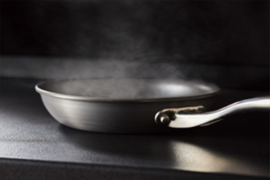 熱に強い 350℃に空焼きしたフライパンを10分間放置しても、割れにくく変色もしにくい高い機能性を備えています。(日常での使用には断熱性のある鍋敷をお使いください。L型タイプは、カウンター接合部と周辺に熱い鍋を直接置かないでください。) -