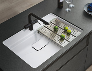 排水部分まで人造大理石の一体成型で、サッとひと拭き。 ※コンパクトシンク・ミニシンクを除く