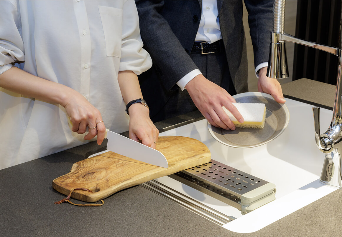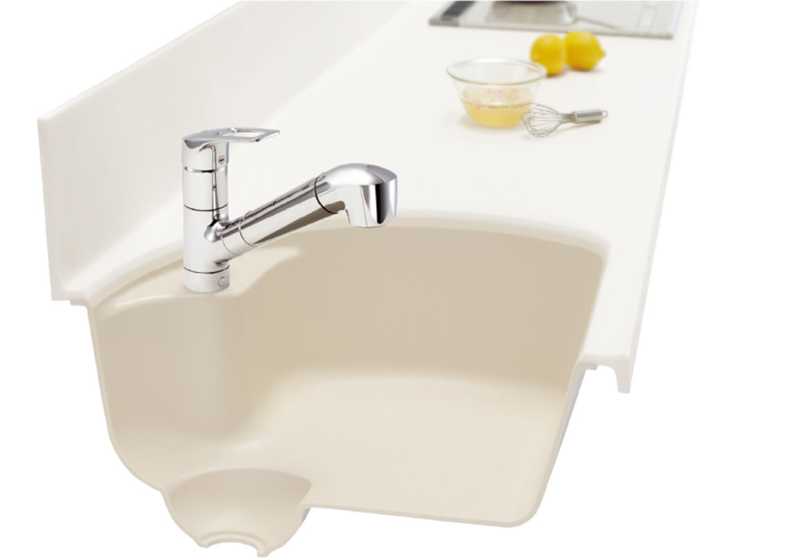 カウンターとシンクに継ぎ目がないので、段差が少なくお手入れカンタンです。