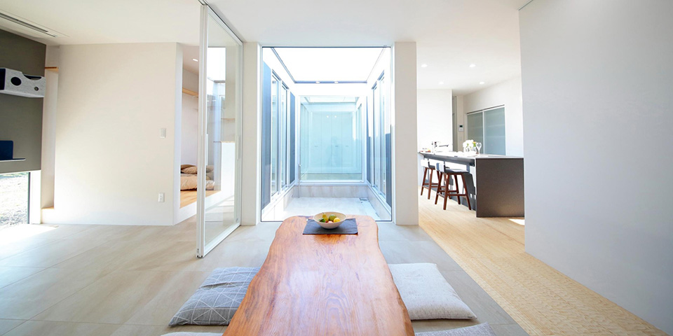 ●家の中心には全面ガラスの中庭