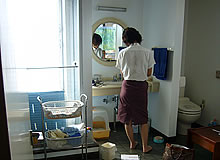 リフォームの依頼を受けたオレンジハウスの伊藤記子さんは、Kさんと相談の上、猫ちゃんたちの日頃の行動もおうかがいして、キャットウォーク付きの楽しくおしゃれなパウダールームをプランニング。イラストで出来上がりのイメージをわかりやすく描いた設計図もお見せして、猫ちゃんが遊べて、Kさんも楽しめる空間を提案しました。